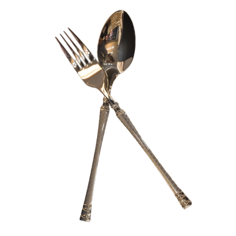 ترکیب ترندهای روز ست ۱۲ تایی قاشق و چنگال استیل مدل معاصر با طراحی و کارایی کلاسیک برای میز های شیک و خاص . مناسب افرادی که دنبال تعادل بین زیبایی و عملکردند. اجرای جزییات برای تجربه بهتر سرو و غذا خوردن.
