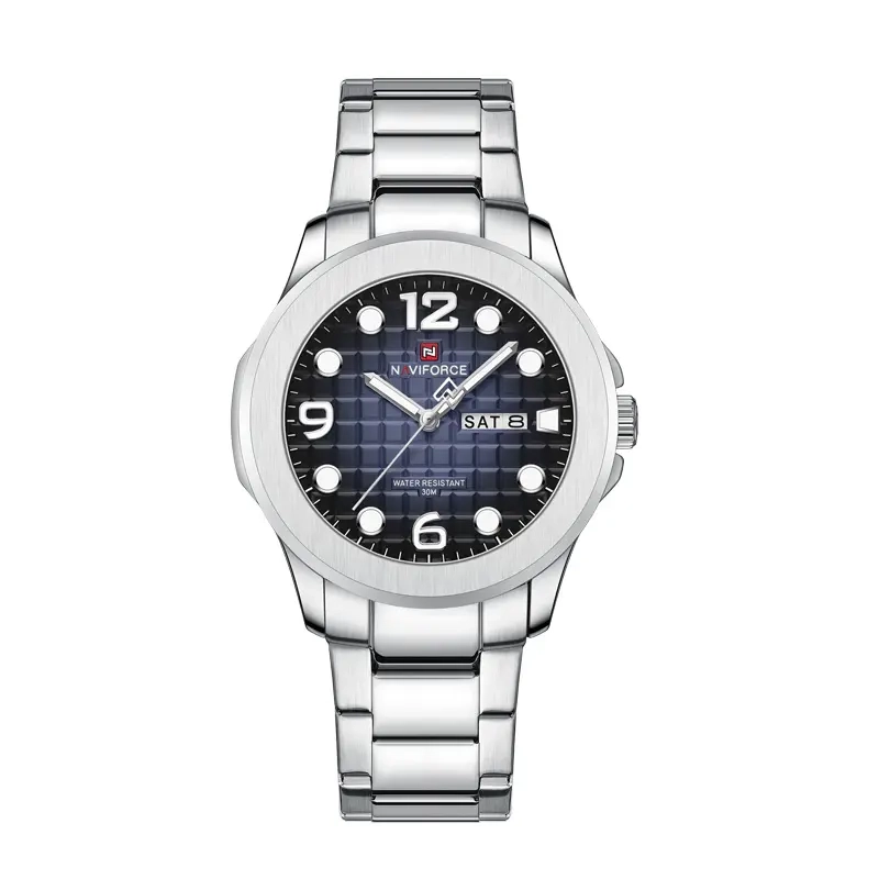 ساعت مچی Naviforce مدل NF9244 با طراحی شیک و کیفیت ساخت بالا، انتخابی ایده‌آل برای استفاده روزمره و رسمی است. این ساعت با بهره‌گیری از موتور کوارتز دقیق و متریال مقاوم، دوام و عملکرد قابل اعتمادی را ارائه می‌دهد.